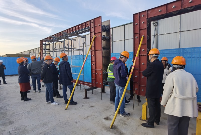 在武进区定安中路北侧、星火北路西侧项目工地现场,防护设备企业结合现场搭建模型重点介绍了模板制作、对拉螺杆套管预埋、立模支撑等施工工艺和流程;设计单位详细讲解了门框墙设计、工法顺序及验收要求等关键技术要点。通过实景演示、技术拆解、互动答疑等形式,展示了防护设备后安装新技术的施工全流程。